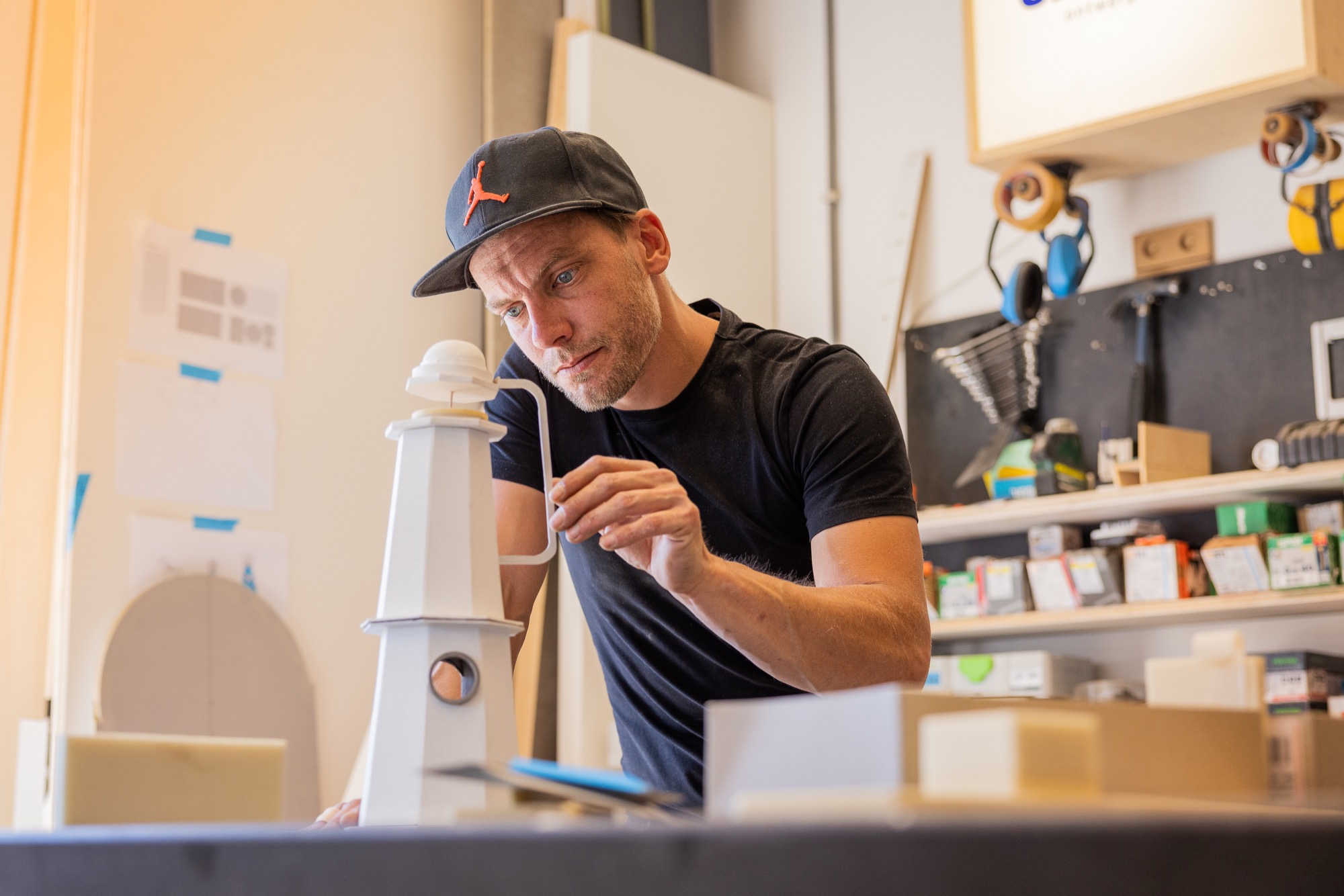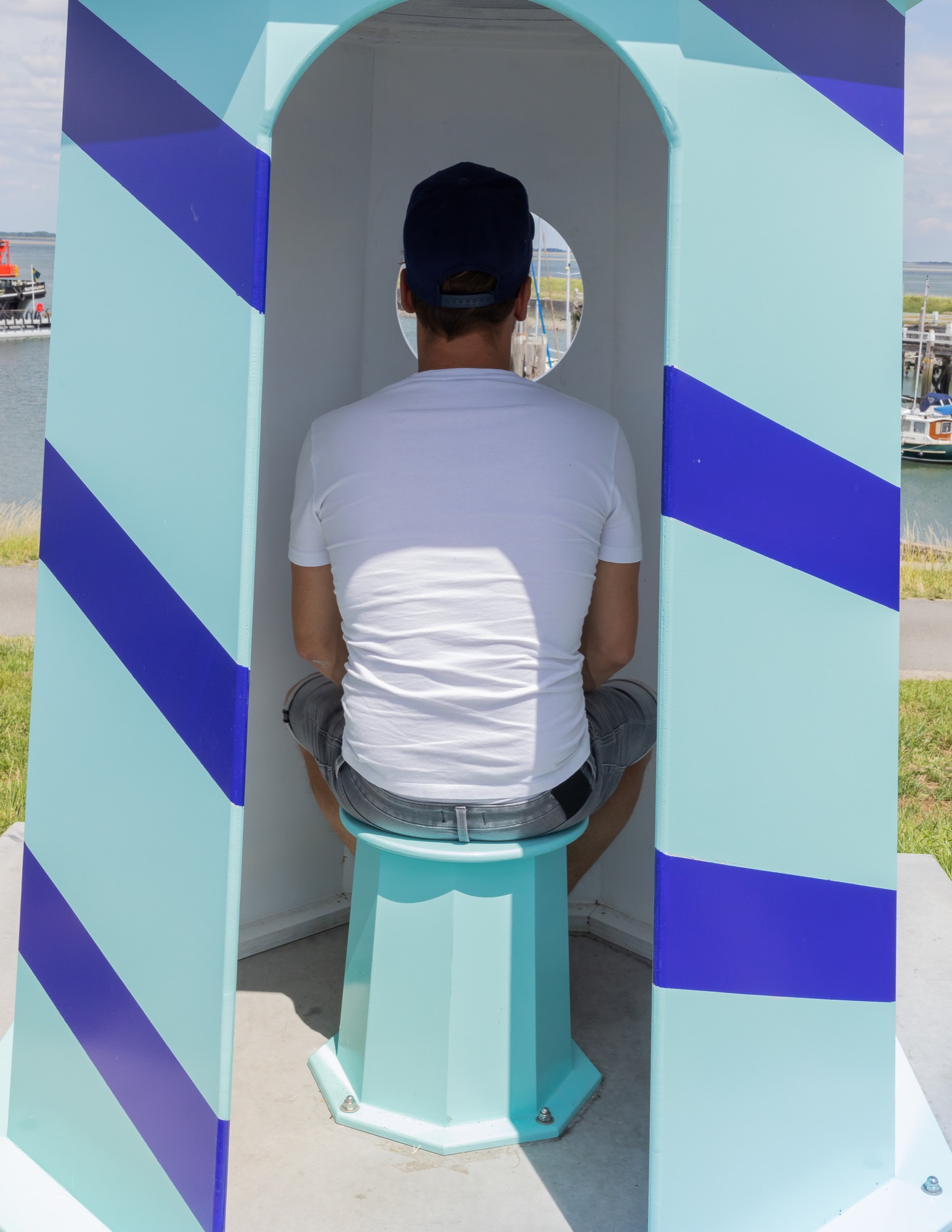Zee en land, gaan hand in hand. Naast elkaar en samen is het Zeeland, mijn thuis. Ik ben een dromer, altijd al geweest. Weg geweest maar teruggekomen, want dit is mijn thuis. Gezocht omdat ik mij anders voelde, alsof ik dacht dat Zeeland niet mijn plek was. Totdat ik begreep dat Zeeland net zoals ik, anders was. Mensen komen hier niet voor niets. Het heeft iets, de rust, de zee, het uitzicht. Het is magisch. Je voelt je thuis, ik ben thuis. Verwonder en kijk anders, zoals je dat als kind ook deed. Daar blijf ik trouw aan en dat maakt mij de ontwerper die ik ben. Een dromer, maar ook een doener. Doen dromen en dromen doen. Onbevangen zijn als het kind in mijn hoofd. Geloven in jezelf en weten dat het kan. Dit kunstwerk is een zelfportret van mijzelf, De Dromer.