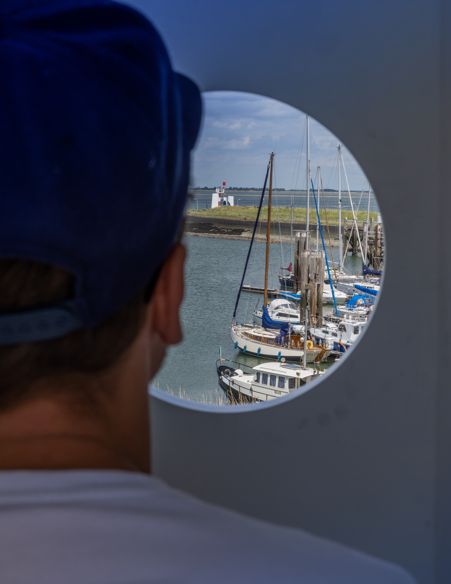 De Dromer staat als een toren, zoals een toren hoort te staan op de boulevard. Hij valt op want dat is zijn enigste taak, en begroet de schipper vriendelijk door zijn hoed af te doen.