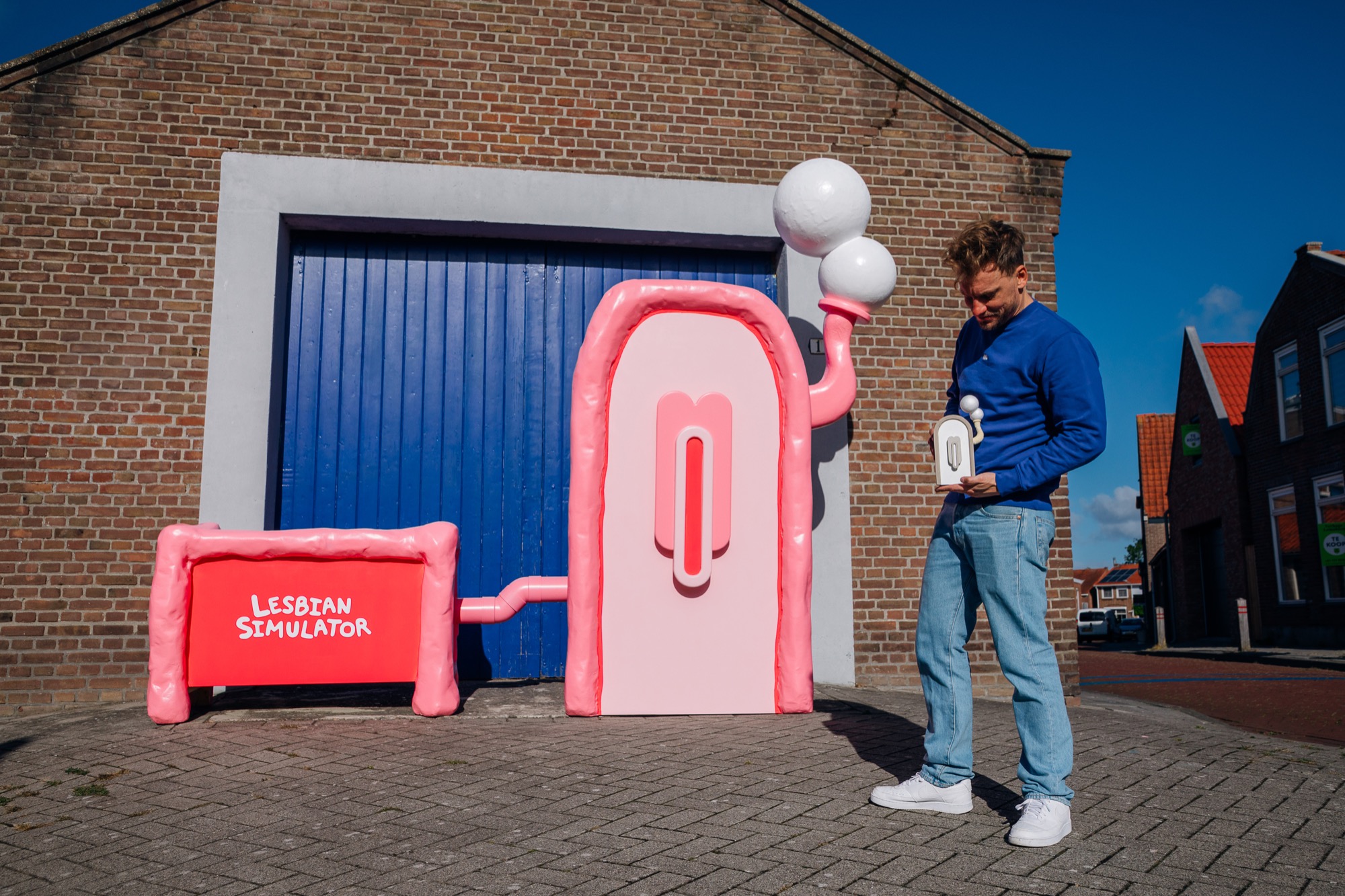 Lesbian Simulator is een interactieve virtual reality-installatie en videogame die bezoekers uitnodigt om de wereld te ervaren vanuit het perspectief van een lesbienne. Het is een ode aan liefde en seksuele voorkeur, maar schuwt ook de serieuze thema’s niet, zoals discriminatie en misbruik waar lesbiennes vandaag de dag nog steeds mee te maken hebben. Tegelijkertijd is het een upliftende ervaring, vol vreugde, roze tinten en een vleugje glitter 💖✨