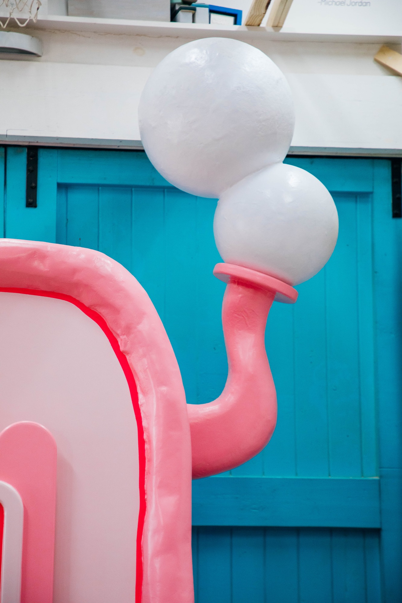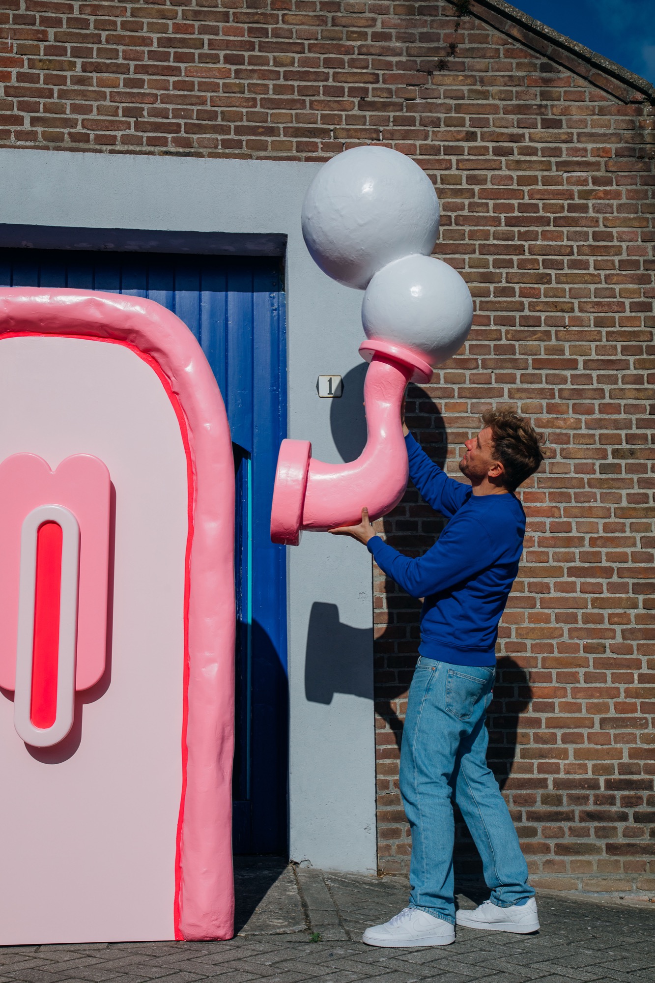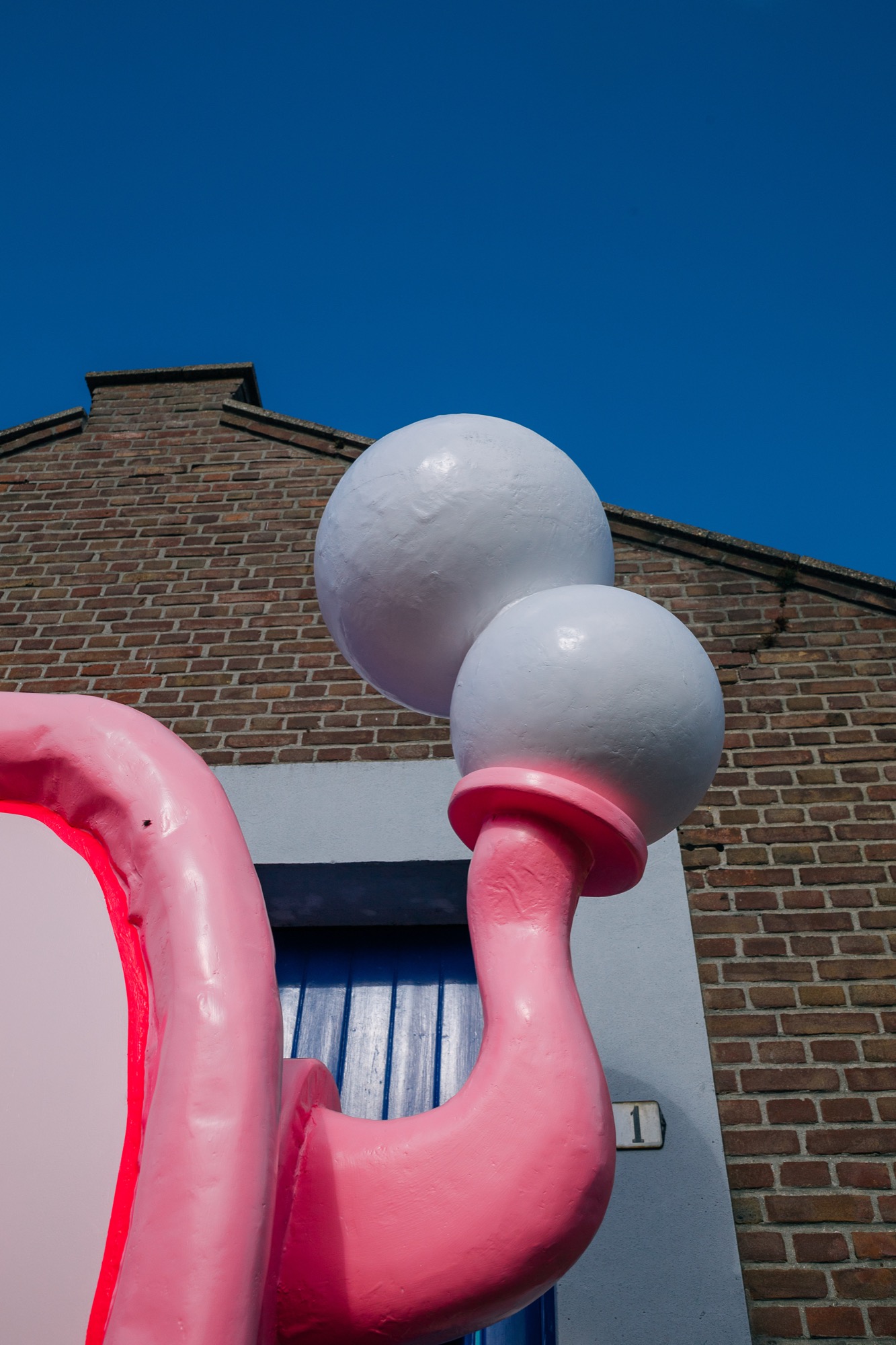 Het uitgangspunt: een demontabele installatie, makkelijk op en af te bouwen en geschikt om van festival naar festival te reizen. De vormentaal is een samensmelting van mijn eigen handschrift en dat van Iris – een samenwerking die heel natuurlijk aanvoelde.